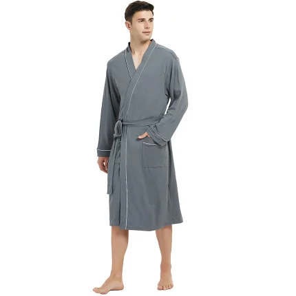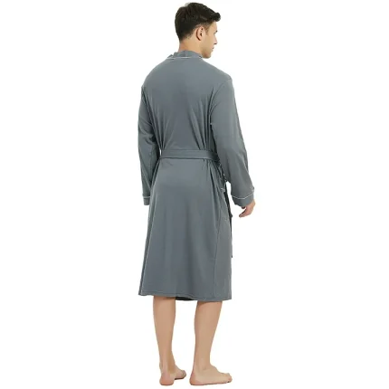 Linen Lavish 100% Cotton Mens Robe, Lightweight Knit Bathrobe,(Iron Gray,S-M)