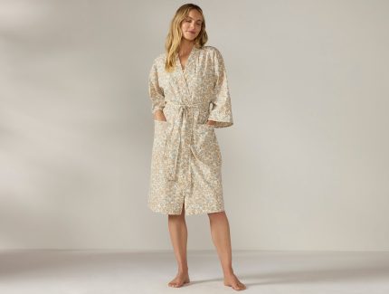 The robe features an inner lace-up tie and an adjustable outer belt for a secure, personalized fit. Whether worn as loungewear, sleepwear, or a casual housecoat, this robe delivers lasting comfort with a stylish touch.