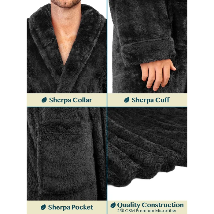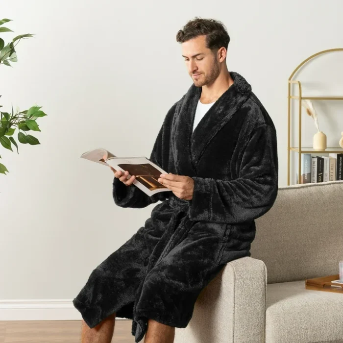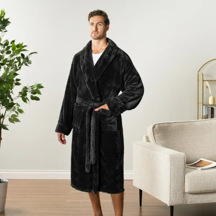 Linen Lavish Mens Soft Robe, Plush Fluffy Fleece Bathrobe for Men, Long Sherpa Spa Robe with Shawl Collar (Two-Tone Black) $120.00 Original price was: $120.00.$55.00Current price is: $55.00.
