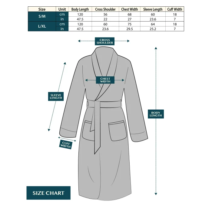 Whether you’re winding down after a long day, sipping coffee on a cold morning, or relaxing at the spa, this lightweight yet cozy robe brings a touch of refined comfort to your daily routine. Its full-length design features a classic shawl collar, long sleeves with stylish cuffs, and a secure adjustable waist belt for a perfect fit. Two deep side pockets keep essentials like your phone or remote close at hand.