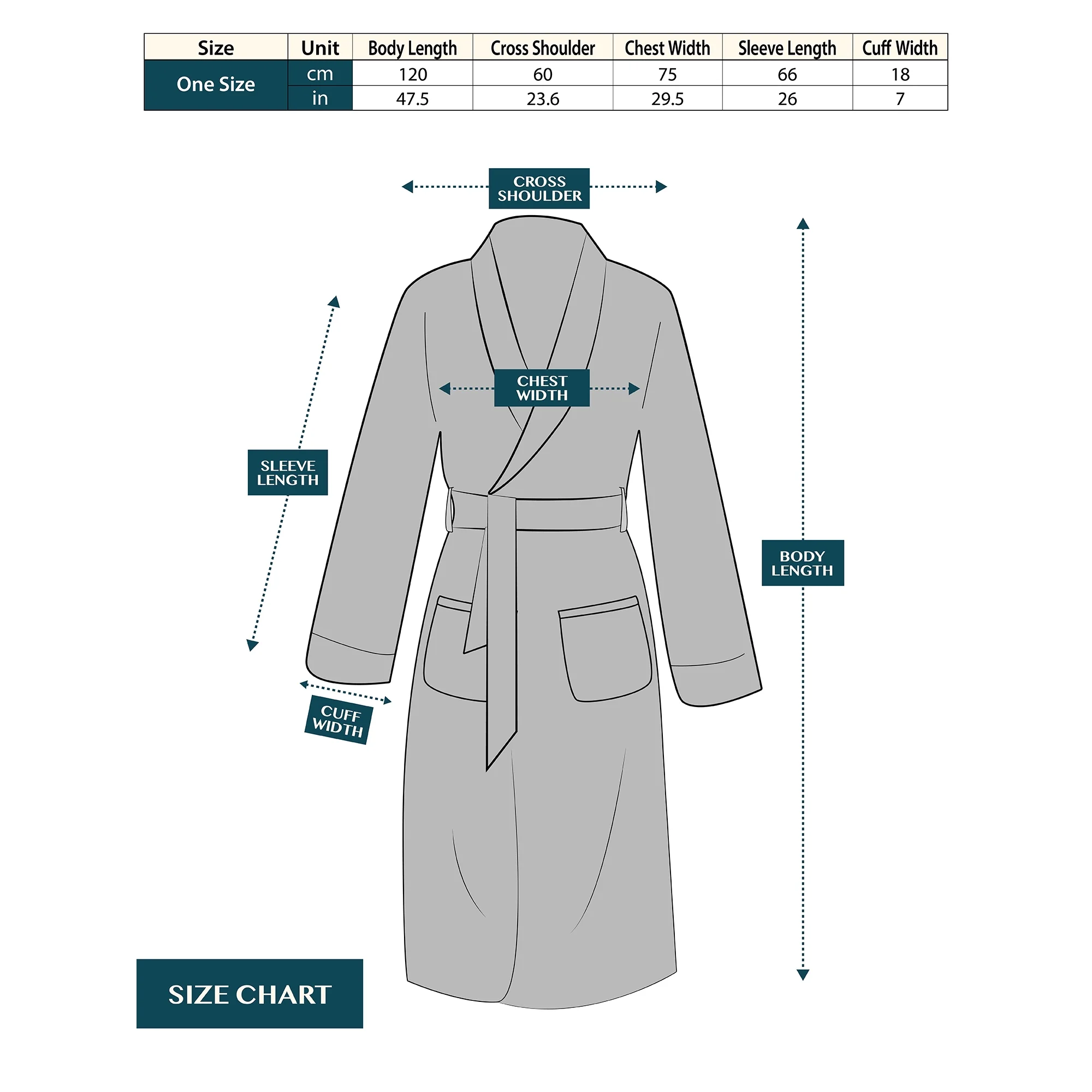The robe features a classic shawl collar, full-length sleeves with cuff detailing, an adjustable waist tie for a secure fit, and two large side pockets for convenience. Whether you’re fresh out of the shower, winding down after work, or simply lounging on the weekend, this robe wraps you in comfort and style.